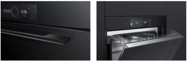 In grifflosen Küchen kann dank AutoDoor komplett auf die Griffe an den Geräten verzichtet werden. Modelle mit Griffen überzeugen durch eine detailgenaue, ergonomische Ausarbeitung. Die Griffe werden aus einem Stück Aluminium gefräst. Veredelt werden sie durch eine perlgestrahlte Oberfläche und als Finish farblich eloxiert. Für jede Spiegelglasvariante gibt es einen passenden Griff. Das schnörkellose Design des Griffs erleichtert die Aussenreinigung der Geräte massiv.