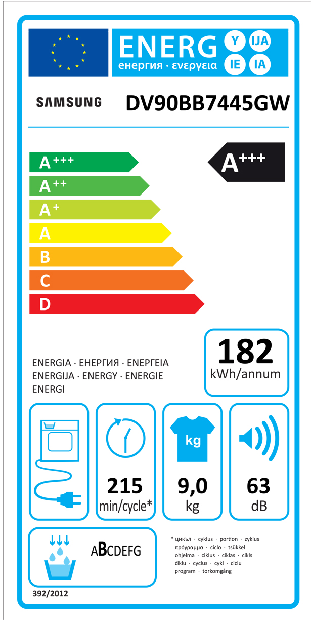 - Energieeffizienzklasse A+++ (höchste Effizienz) bis D (geringste Effizienz) A+++