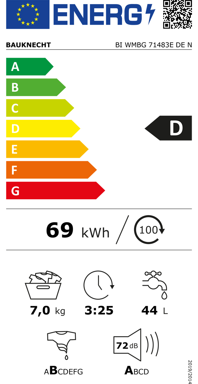 - Gewichteter Energieverbrauch je 100 Waschzyklen: 69 kWh