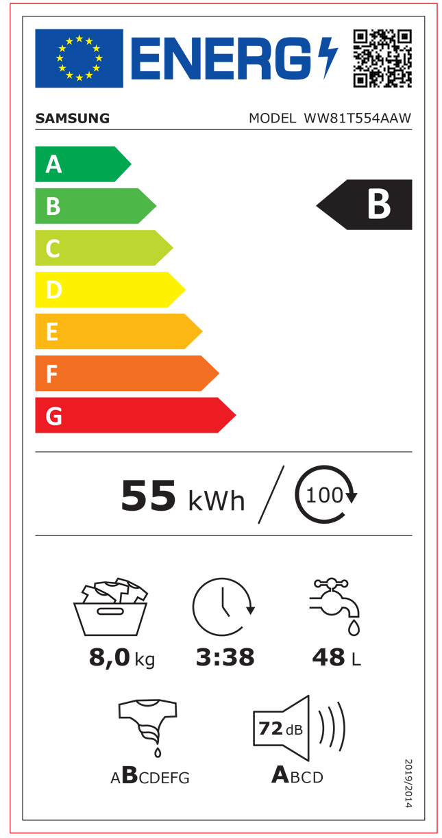 - Energieeffizienzklasse: B auf einer Skala von A (höchste Effizienz) bis G (geringste Effizienz)