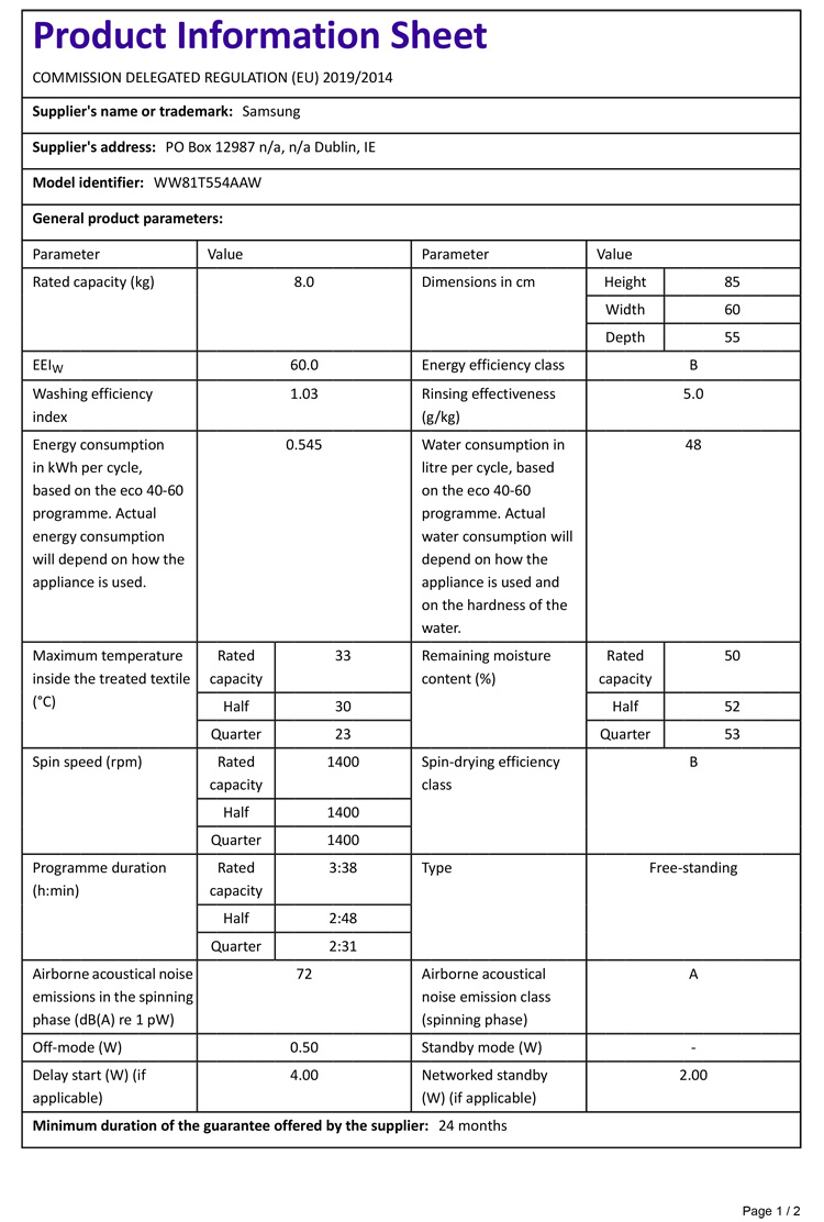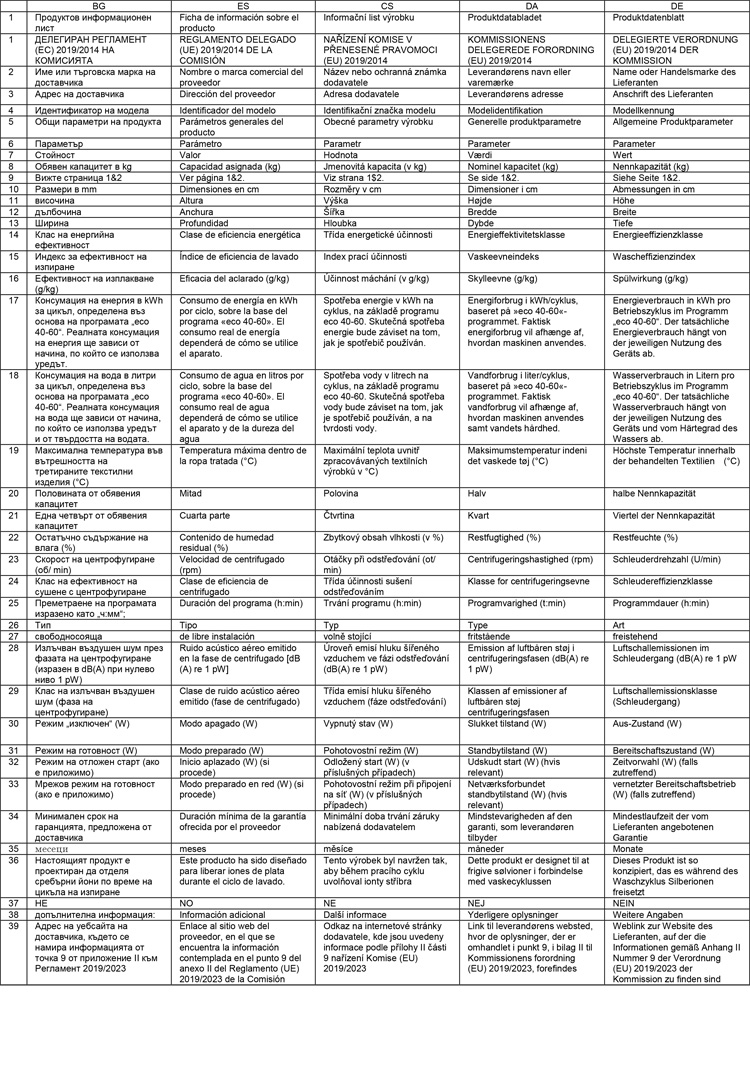 - Schleudereffizienzklasse BA auf einer Skala von A (höchste Effizienz) bis G (geringste Effizienz)