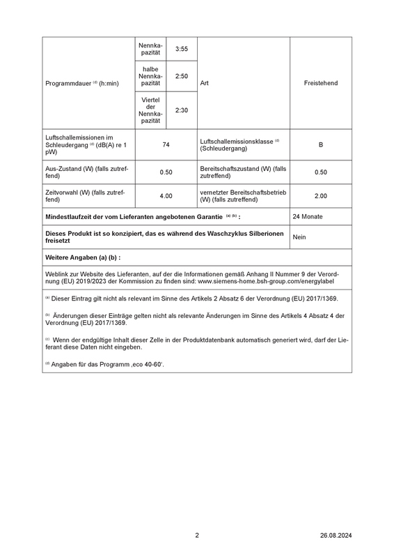 Dauer des Programms eco 40-60 in Stunden und Minuten bei Nennkapazität: 3:57 h