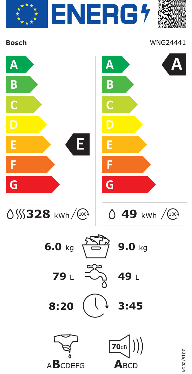 - Schleudereffizienzklasse des Programms eco 40-60: B