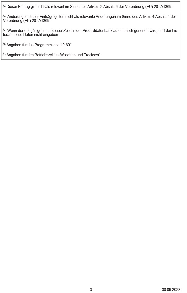 - Stromverbrauch³ / Wasserverbrauch⁴ Waschen und Trocknen: 328 kWh / 79 Liter