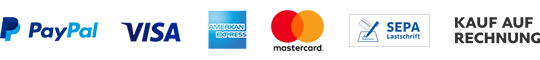 Lieferung auf Rechnung wird via PayPal Plus angeboten. Bestätigen Sie dazu die Zahlung mit PayPal und setzen Sie den Haken beim Rechnungskauf. Die Zahlung wird im Nachgang dann direkt an PayPal geleistet. Sie erhalten dazu von PayPal eine separate Email. Das Limit hierzu liegt bei 1.500,00 Euro!
